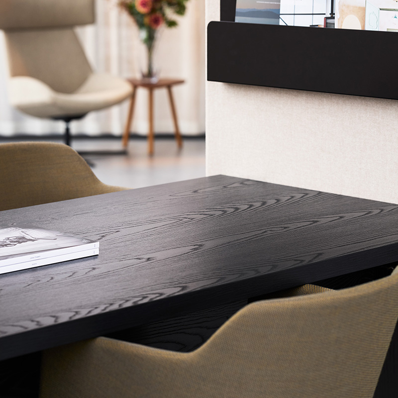 Products featuring laminate include Rombowork, Sandy table, Sit Around, The Hut GEM, Half a Hut GEM, cabinet insert for Moving Wall, Moving Wall Media, Moving Wall Bridge, Moving Wall Tower, as well as the table for Rombo Seat.