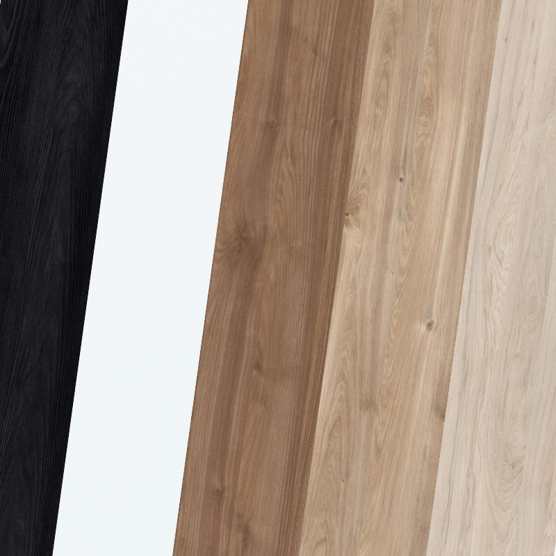 Our laminates are available in five colours: black wood texture, white, oak, white-pigmented wood and walnut.