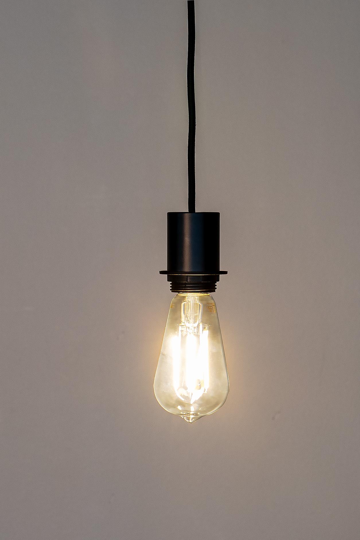 A simple pendant with a decorative black textile cable and an E27 socket for the Silent Pendant lampshade. LED bulb included.