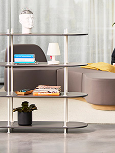 Create order with smart storage units with sound absorbing qualities. Thanks to smartdesign such as cable management, place for the TV, writing board and electric sockets, the needsare met for many types of spaces. Create zones and rooms within the room, move around thanks to the mounted wheels or build a meeting point with the storage at its center. Creative spaces see the possibilities!