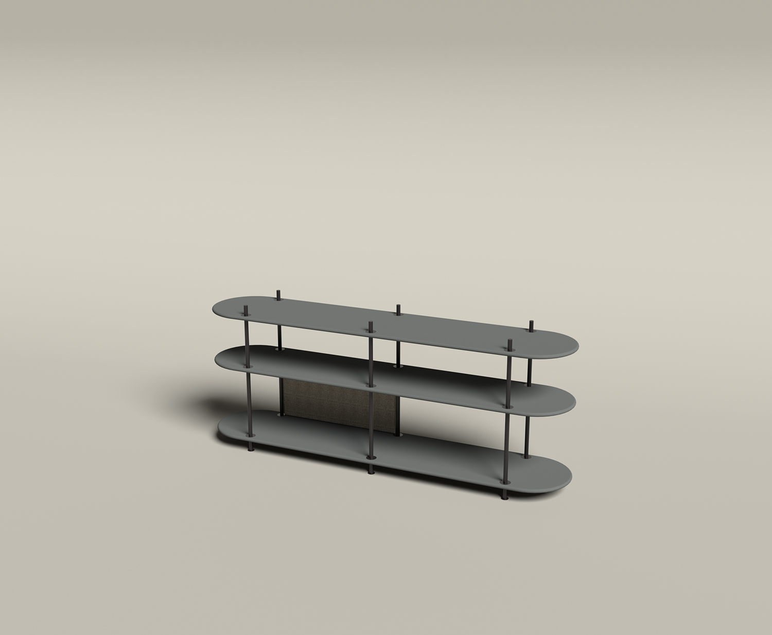 Shelves available in four colours: Black (similar to RAL 8022), Creme white (similar to RAL 9001), Greengrey (lsimilar to RAL 7002) and Bluegrey (similar to 7043).