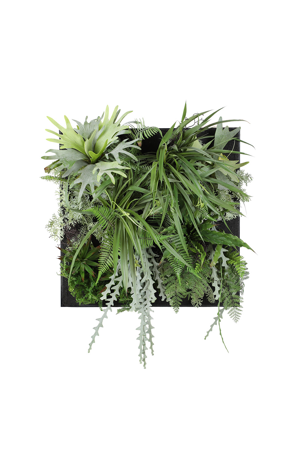 Le panneau végétal est disponible en trois variantes avec différentes compositions de plantes. Tous sont encadrés par un cadre en bois noir.