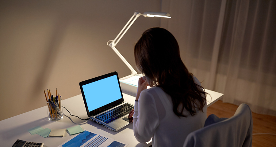 - Vila hjärnan och ögonen från skärmar och belysning vid pauser, och låt ögat få fokusera på något som finns flera meter bort. Byt gärna plats under dagen, för att inte sitta i samma ljussatta miljö för länge.