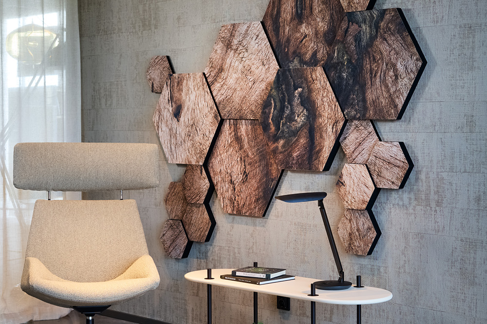 Honey print finns i flera snygga mönster med inspiration från naturen och den senaste nyheten heter Wood. Honey mini är absorbenten i samma form som vanliga Honey men i en mindre storlek. Genom att ta fram en mindre ljudabsorbent kan vi använda materialet mer effektivt och samtidigt minska onödigt spill. Kostnadseffektivt och klimatsmart. Samtliga Honey print kommer i mini-varianter.