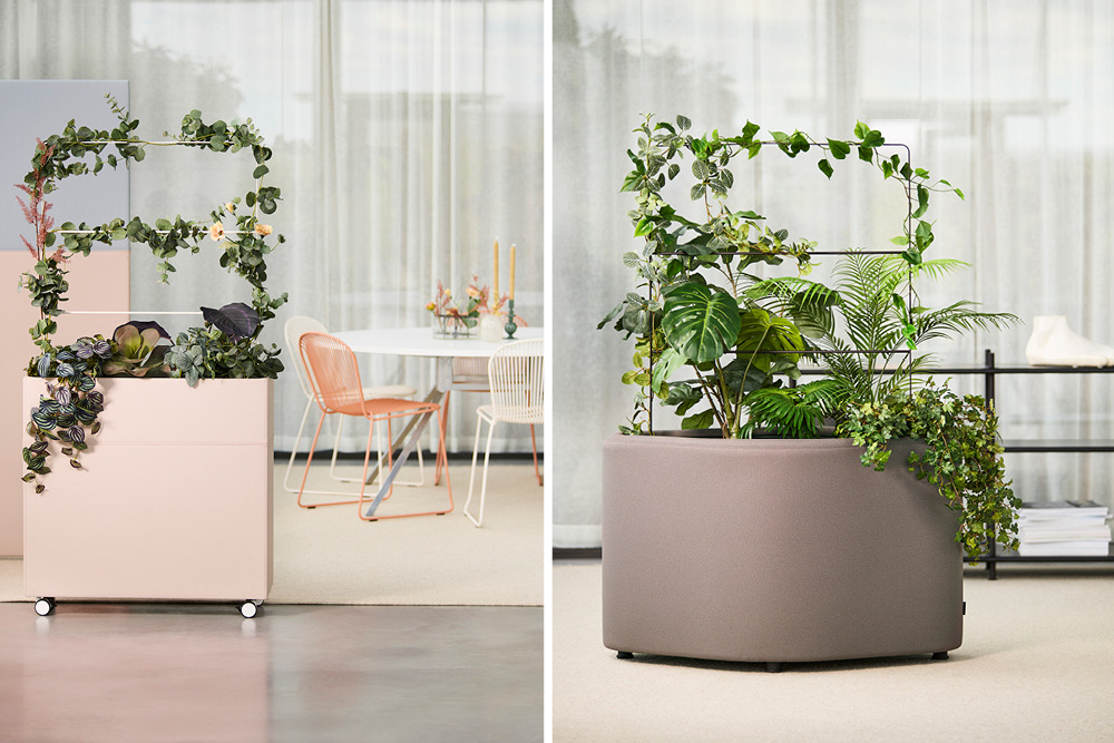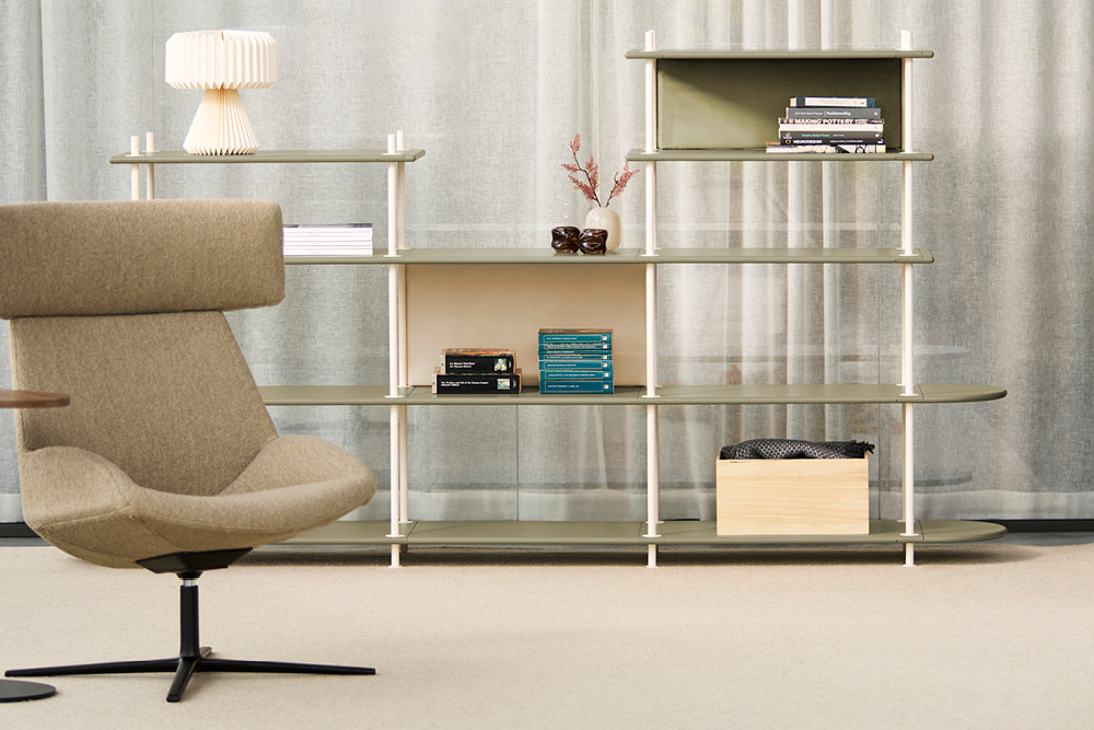 Kombinerad förvarings- och avskärmningsmöbel som enkelt byggs ihop med olika moduler. Helt verktygslös montering.
