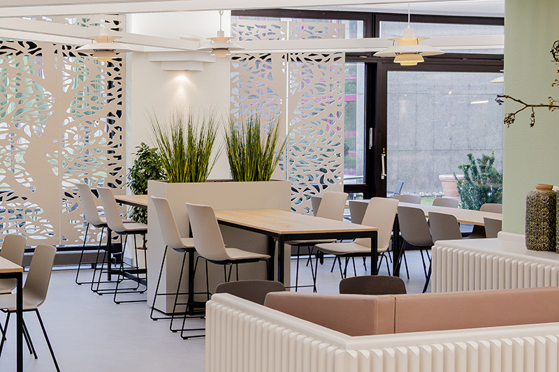 I samband med renoveringen av de gemensamma personalutrymmena på Klinikum Solingen har fokus legat på att skapa en miljö som inte bara fungerar praktiskt – utan också bidrar till välbefinnande, återhämtning och arbetsglädje. Som ett av regionens ledande sjukhus, med hög specialiseringsgrad och modern medicinteknik, är arbetsmiljön en viktig del i helhetsupplevelsen för både personal och patienter.